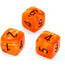 Vortex Polyhedral Orange/black d6 ~ Multiple loose dice are pictured to show all sides and possible color variations. Item Code is for individual dice.