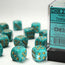 Chessex D6 DiceVortex 16mm d6 Teal/gold Dice Block (12 dice)