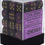 Chessex D6 Gemini 12mm d6 Black-Purple/gold Dice Block (36 dice)