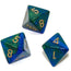 Gemini Polyhedral Blue-Green/gold d8 ~ Multiple loose dice are pictured to show all sides and possible color variations. Item Code is for individual dice.