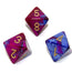Gemini Polyhedral Blue-Purple/gold d8 ~ Multiple loose dice are pictured to show all sides and possible color variations. Item Code is for individual dice.