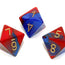 Gemini Polyhedral Blue-Red/gold d8 ~ Multiple loose dice are pictured to show all sides and possible color variations. Item Code is for individual dice.
