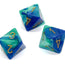 Gemini Polyhedral Blue-Teal/gold d8 ~ Multiple loose dice are pictured to show all sides and possible color variations. Item Code is for individual dice.