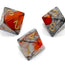 Gemini Polyhedral Orange-Steel/gold d8 ~ Multiple loose dice are pictured to show all sides and possible color variations. Item Code is for individual dice.