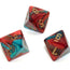 Gemini Polyhedral Red-Teal/gold d8 ~ Multiple loose dice are pictured to show all sides and possible color variations. Item Code is for individual dice.