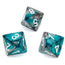 Gemini Polyhedral Steel-Teal/white d8 ~ Multiple loose dice are pictured to show all sides and possible color variations. Item Code is for individual dice.