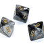 Lustrous Polyhedral Black/gold d8 ~ Multiple loose dice are pictured to show all sides and possible color variations. Item Code is for individual dice.
