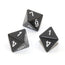 Opaque Polyhedral Black/white d8 ~ Multiple loose dice are pictured to show all sides and possible color variations. Item Code is for individual dice.