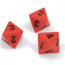Opaque Polyhedral Orange/black d8 ~ Multiple loose dice are pictured to show all sides and possible color variations. Item Code is for individual dice.