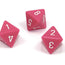 Opaque Polyhedral Pink/white d8 ~ Multiple loose dice are pictured to show all sides and possible color variations. Item Code is for individual dice.