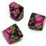 Gemini Polyhedral Black-Purple/gold Tens 10 ~ Multiple loose dice are pictured to show all sides and possible color variations. Item Code is for individual dice.