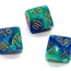 Gemini Polyhedral Blue-Teal/gold Tens 10 ~ Multiple loose dice are pictured to show all sides and possible color variations. Item Code is for individual dice.