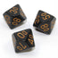 Opaque Polyhedral Black/gold Tens 10 ~ Multiple loose dice are pictured to show all sides and possible color variations. Item Code is for individual dice.