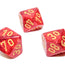 Vortex Polyhedral Red/yellow Tens 10 ~ Multiple loose dice are pictured to show all sides and possible color variations. Item Code is for individual dice.