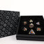 The dice comes in a giftable box with a unique design, with foam divets to keep the dice secure and safe.