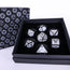 The dice comes in a giftable box with a unique design, with foam divets to keep the dice secure and safe.