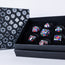 The dice comes in a giftable box with a unique design, with foam divets to keep the dice secure and safe.