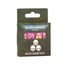 This is a set of 16 square-cornered six-sided dice for use in games of Warhammer 40,000, themed around the Death Guard. They are cast in pearlised purple acrylic plastic with green ink markings, and measure 16mm along each edge. The 1-5 facings are traditionally pipped and each '6' face is decorated with the blessed icon of the Death Guard.