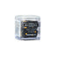 This is a set of 8 six-sided dice with rounded edges for use in games of Necromunda, themed around Palanite Enforcers gangs. They are cast in pearlised black acrylic plastic with yellow ink markings, and measure 16mm along each edge. On the standard D6s, the 1-5 facings are traditionally pipped and each '6' face is decorated with the brutal icon of the Palanite Enforcers.