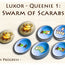 The new scarab tiles offer a wide variety of one shot actions. Once acquired, a player can choose on which of his turns he wants to use the action. During set-up, the new scarab tiles can either replace the ones from the basic game or be shuffled in. The players decide which way they want to play. The Actions: - Play any card, instead of just the left or right most card. - When entering a tunnel jump straight to the last discovered tunnel. - Disregard the played card, instead move one of your adventurers to your next following adventurer. - Disregard the played card and instead use the effect of one of the top Horus cards from the display - Disregard the played card and move one of your adventurers to the next treasure tile Contents: 15 scarab tokens